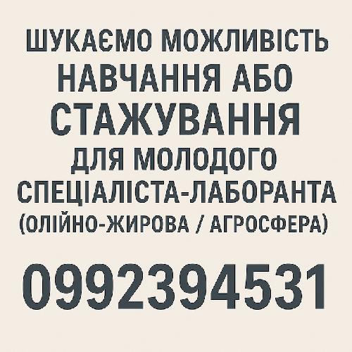 Шукаємо можливість навчання або стажування для молодого спеціаліста-лаборанта (олійно-жирова / агросфера)